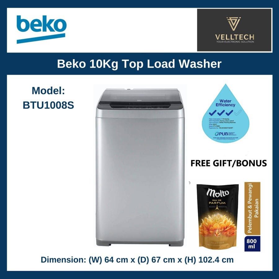 - BEKO MESIN CUCI 1 TABUNG 10KG BTU1008S TOP LOADING