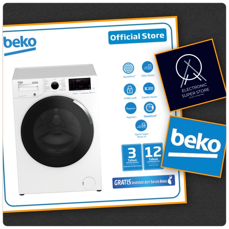 - MESIN CUCI FRONT LOADING 8KG BEKO WCV8646X0 PRO SMART INVERTER AQUA WAVE DRUM