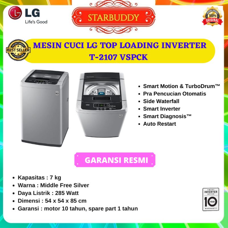 - MESIN CUCI LG T2107VSPCK SMART INVERTER 7 KG JADETABEK